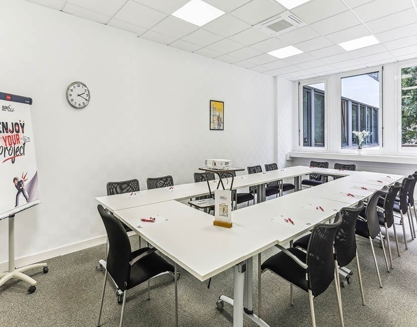 La location d’une salle de réunion à BURO Club Rennes est proposée à partir de 260 € HT la journée (possibilité de location à la demi-journée). Ce tarif vous donne accès à une des deux salles du centre pouvant accueillir de 12 à 15 personnes, équipée d’un écran mural et d’un vidéoprojecteur. Contactez le centre pour une estimation sur mesure si vous avez des besoins spécifiques en termes d’équipements, de services supplémentaires ou de durée. Contactez-nous directement pour obtenir une offre tarifaire sur mesure au 06 09 02 81 63.